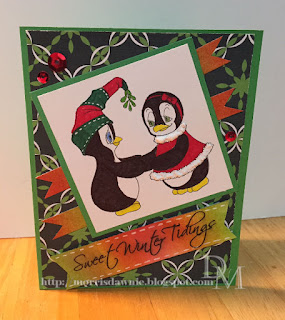 For my cookie card, I am using Elf Cane and I colored it with markers. I trimmed it down and framed it with red cs. Tied red and white bakers twine around the bottom.